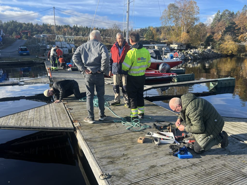 Fantastisk oppmøte og dugnad på flytebrygger Moland Havn