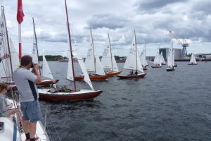 Søndagen startet med fin vind fra første regatta, og vi kom oss godt i gang. Det skulle gjennomføres tre seilaser, og de to første gikk bra unna. Etter start på den tredje seilasen dreide vinden skikkelig, og toppmerket lå så feil at regattaansvarlig valgte å stoppe denne. En bra avgjørelse, og etter en kjapp justering ble regattaen gjennomført.
